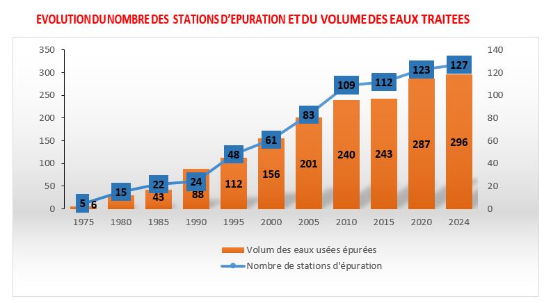 EVOLUTION DU NOMBRE DES STATIONS D’EPURATION ET DU VOLUME DES EAUX TRAITEES
