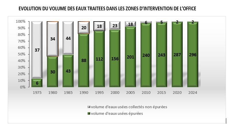 EVOLUTION DU VOLUME DES EAUX TRAITEES DANS LES ZONES D’INTERVENTION DE L’OFFICE