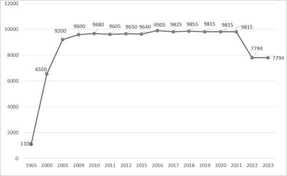 En 2023, 57.6 millions de m3 d'eaux usées traitées ont été réutilisées (20%) dont 10.89 millions de m3 ont été réutilisées directement dans l’irrigation de 2725 hectares parmi 7794 hectares aménagés pour être irrigués par les eaux usées traitées répartis comme suit:
